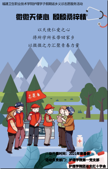 为充分发挥高校“双带头人”教师党支部在党建、学术方面的独特优势,做好党支部带头引领作用与战斗堡垒作用,同时增强共青团带领青年在经济社会发展中发挥生力军和突击队作用,弘扬红十字会的人道、博爱、奉献精神。我校护理学院第一党支部协同护理学院团总支红十字会开展返乡志愿服务活动,组织护理学子在2020年寒假返乡期间,发挥护理专业的知识与技能,在家乡开展志愿服务活动,反哺家乡的养育之恩,弘扬白衣天使的仁爱奉献精神。
