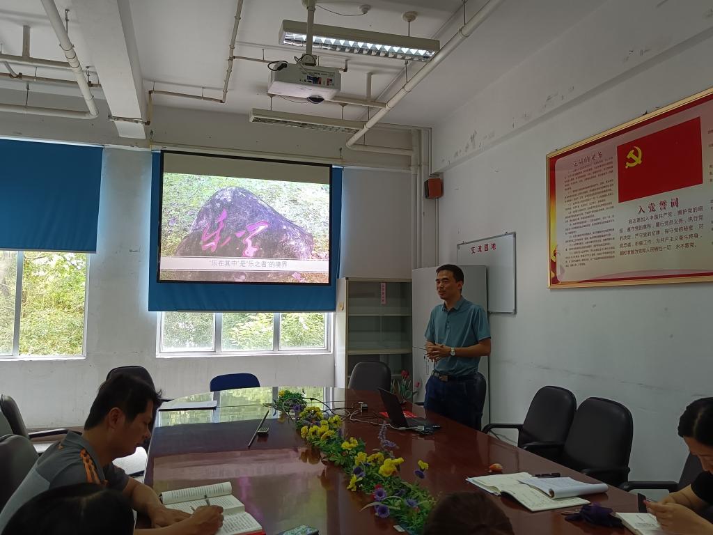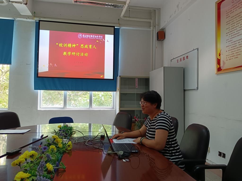 活动前,每位教师根据课程思政建设情况,经教研室研讨和自己思考,以图文并茂的形式,撰写了三千字以上的“校训精神”心得。活动中,各教研室评选推荐的陈戴和、许颖、林晋三位教师依次做主题发言。陈戴和发言的主题是“石头无言,校训有声”,他一边展示学校校园的文化石、雕塑、校史馆等文化景观,一边结合学校历史、援鄂事迹、优秀校友故事等素材生动地阐述着校训精神的内涵、外延和教育功能。他强调,校园里一片葱葱郁郁,正是学院充满“朝气”的写照。业精德诚,崇德重技,白衣天使,风华正茂,数风流人物,还看今朝!