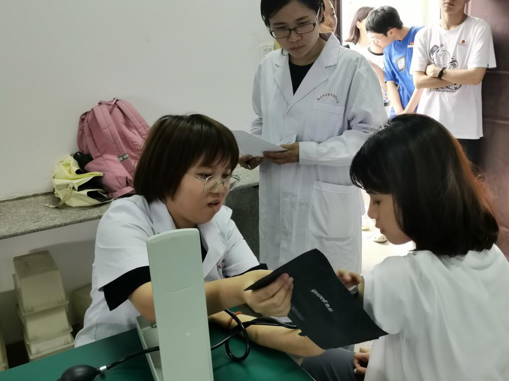 学生血压测量竞赛,老师认真评分