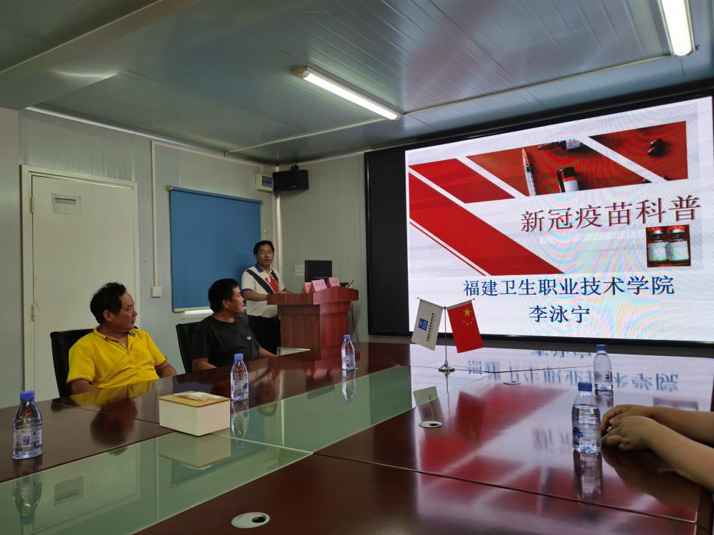 李泳宁同志结合目前国家疫情防控政策,向项目部一线工程师科普新冠疫苗知识,从免疫学的角度深入浅出地讲解了接种新冠疫苗的必要性,阐明接种新冠疫苗是常态化疫情防控期间预防新冠肺炎传染最简便有效的手段。他还详细介绍了目前国内已经获批上市的三种新冠疫苗的优缺点以及疫苗接种的注意事项。