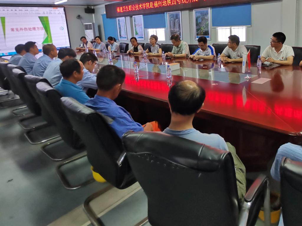 参观结束后,药学院第二党支部全体党员、中建海峡四号线工程项目党支部全体党员及技术骨干齐聚项目部会议室,聆听药学院副院长李泳宁同志和药理教研室主任潘雪丰同志带来的健康知识小讲座。
