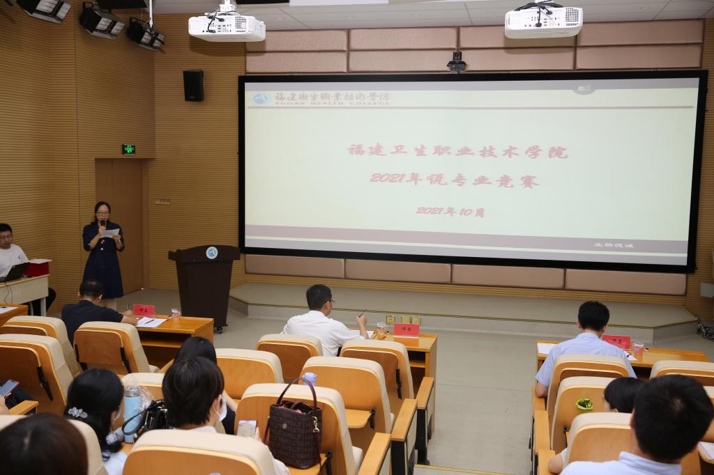 本次比赛邀请了福建中医药大学教师发展中心主任许克祥、福建省教育科学研究所副所长叶峰、福建省教育评估研究中心副主任王长旺三位专家担任评委,校长许能锋和教务处处长朱扶蓉出席活动。全校五个二级院(系)共派出11名代表参赛,各院(系)教研室主任、专业带头人及骨干教师现场观摩。