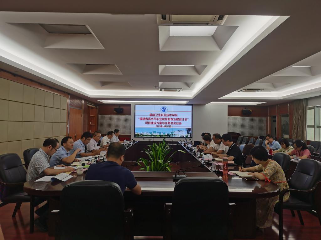 为顺利推进我校双高项目建设工作,提升建设方案的质量和水平,按照《福建省教育厅关于做好“福建省高水平职业院校和专业建设计划”项目建设方案和任务书的通知》要求,10月16日,我校在行政楼四楼会议室组织召开福建卫生职业技术学院“福建省高水平职业院校和专业建设计划”项目建设方案和任务书论证会。论证会邀请了福建省职教中心主任龚森、福建省教育评估研究中心副主任王长旺、福建信息职业技术学院副院长李宏达、福州职业技术学院办公室主任饶绪黎、福建船政交通职业学院教务处处长陈朝慰、原福建医科大学附属第一医院药学部主任王长连、福建医科大学附属第一医院分院副院长李跃明共七位专家作为论证专家组成员。校长许能锋、各项目负责人和项目办有关人员参加会议,教务处处长朱扶蓉主持会议。