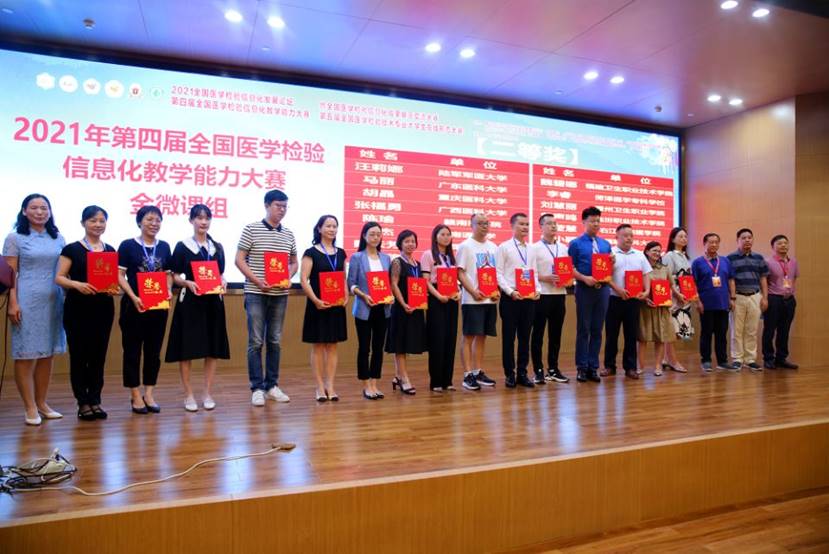 7月24日,由全国高等学校医学检验专业联盟主办、中华医学会检验医学分会协办的“2021全国医学检验信息化发展论坛暨全国医学检验信息化教学能力大赛”在广西百色市右江民族医学院举行。经过专家组评定、现场答辩等环节,我校医学技术系魏碧娜老师获得2021年第四届全国医学检验信息化教学能力大赛金微课组二等奖;林丹红老师获得2021年第四届全国医学检验信息化教学能力大赛虚拟仿真实验项目创意方案组三等奖。