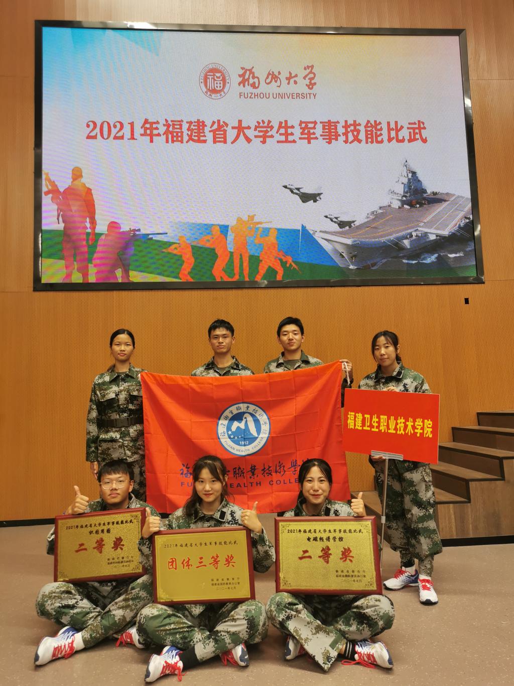 2021年7月19日,由福建省教育厅、福建省国防教育办公室主办的2021年福建省大学生军事技能比武竞赛在福州大学圆满落幕。此次比武为期3天,全省共有51所高校500多名师生参加,设有识图用图、轻武器分解、单兵战术基础、电磁频谱管控、战场医疗救护和手榴弹定点投掷等6个赛项,我校代表队首次参加了全部项目,最终荣获“识图用图科目”和“电磁频谱管控科目”2个单项二等奖,以及团体三等奖的佳绩。