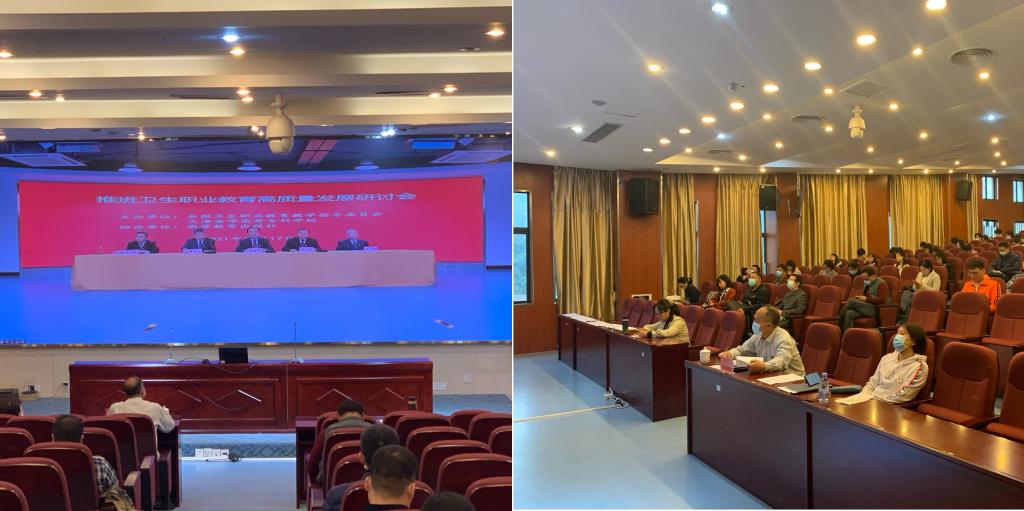 为深入贯彻习近平总书记重要指示和全国职业教育大会精神,落实《国家职业教育改革实施方案》,学习贯彻《关于推动现代职业教育高质量发展的意见》文件精神,2021年11月17日,全国卫生职业教育指导委员会与天津医学高等专科学校组织召开“推进卫生职业教育高质量发展”研讨会。教务处、党委宣传部及继续教育中心负责人,各院(系、部)领导及教师代表在实训楼4楼报告厅观看视频会议,校长许能锋全程参加此次线上会议。