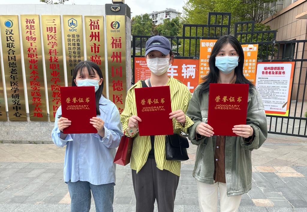 苏倩怡、连兰珍、王云丽是福州市国德康养中心的实习生,在这里,学习了三年老年保健与管理专业知识的她们,终于有机会一展拳脚,主要负责长者体检指导,辅助康复训练,健康管理指导等工作。2022年3月福州疫情发生以后,国德康养中心开启封闭式管理,她们毫无怨言,依然坚守岗位,全力配合参与各项工作,她们给长者们策划活动、陪他们聊天疏导情绪,以实际行动承担起对长者的责任。当国德康养中心医护人员主动承担志愿服务时,她们也自告奋勇地参与后勤保障工作,大箱小箱搬运医疗物资、对医疗垃圾和生活垃圾分类,不厌其烦地拨打电话询问村民是否完成核酸检测,常常忙碌到凌晨。
