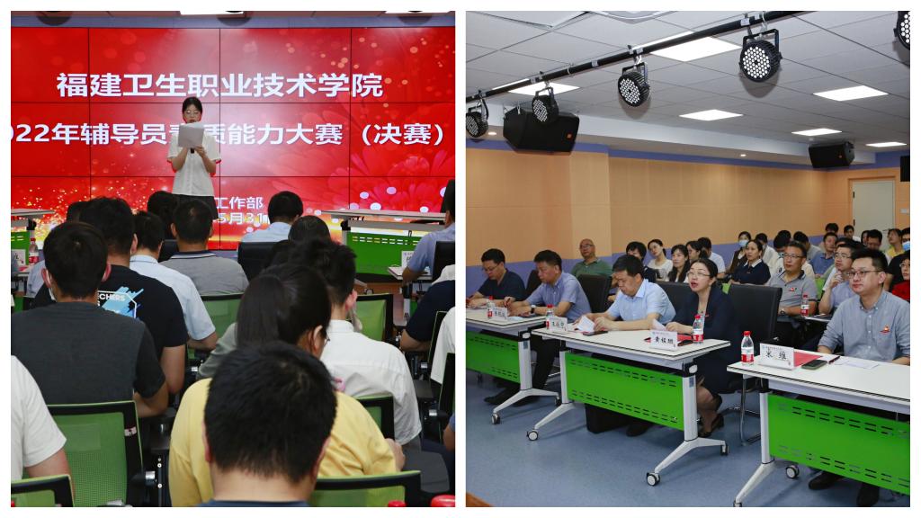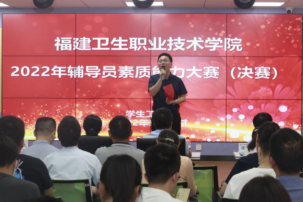 5月31日上午,福建卫生职业技术学院2022年辅导员素质能力大赛决赛在我校青年之家多功能厅成功举办。大赛邀请福建信息职业技术学院党委副书记王兴中、福建农业职业技术学院学生工作部部长陈晓波、福建师范大学法学院党委副书记周延锋、我校副校长黄铭珊、宣传部部长宋维担任评委,校党委书记曾武祈,学生工作部、团委、马克思主义学院等部门负责人,各院系党总支书记、副书记及全体专职辅导员观摩了比赛。