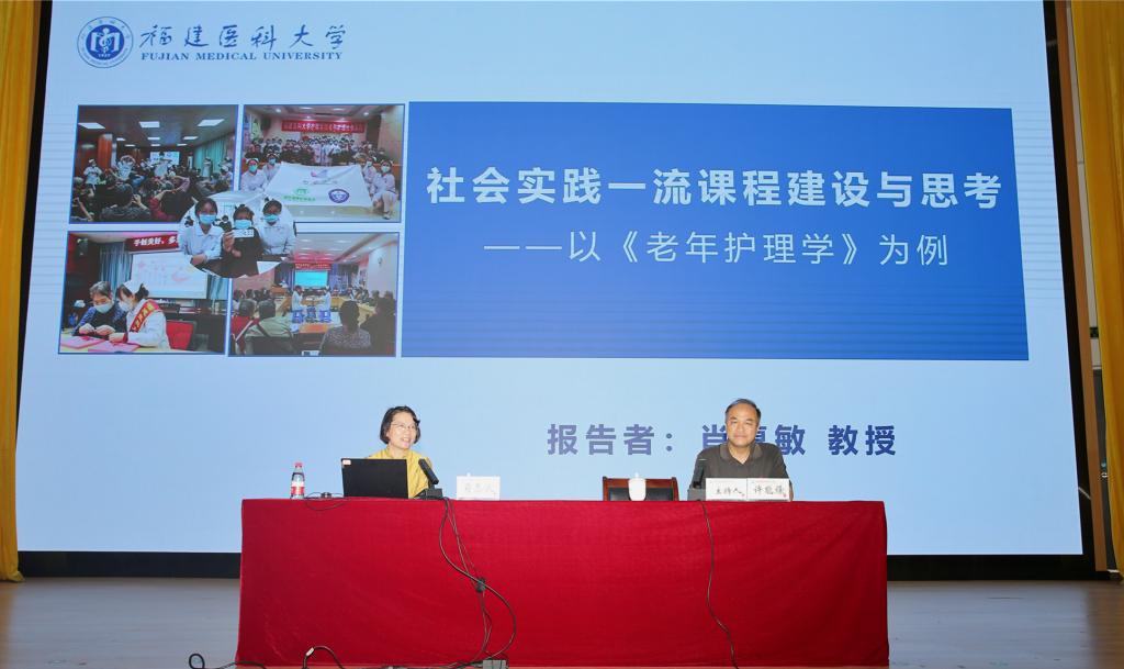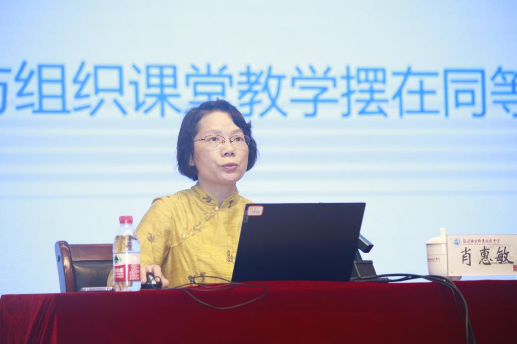 2022年6月2日,我校特邀福建医科大学护理学院院长肖惠敏教授为学校教师开展《社会实践一流建设与思考——以<老年护理学>为例》专题讲座。讲座由校长许能锋主持,各院系教师代表150余人参加讲座。