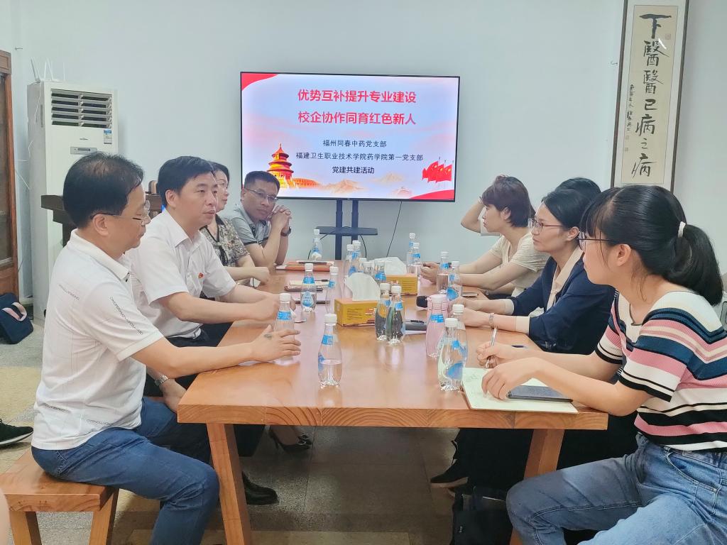 围绕党建引领业务,产教融合发展的工作重心,党员教师陈钰、张杏分别介绍中药、药品经营与管理相关课程在教学中的重难点,并与企业探讨如何将真实工作场景融入教学过程。企业专家热烈讨论,建言献策,提出将企业岗位职责融入课程建设,邀请校内专任教师深入企业进行专业研讨,共育德技兼修的时代新人。