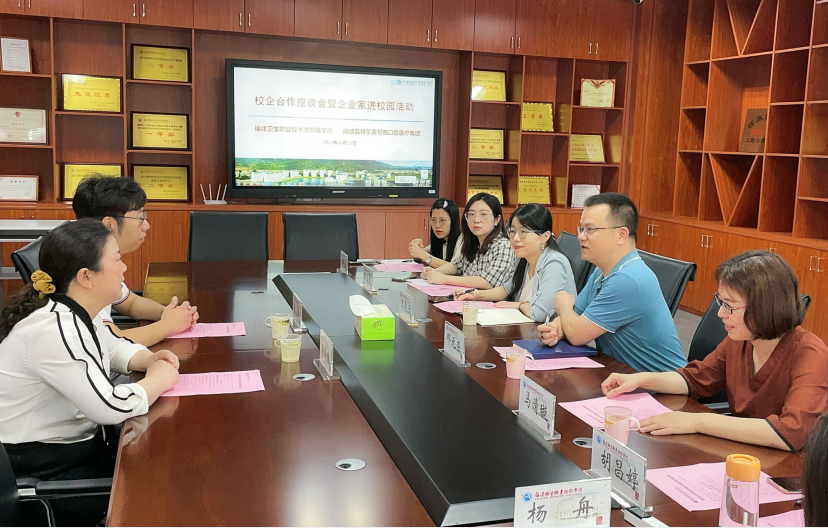 为深入贯彻落实全国职业教育大会精神和新《职业教育法》,深化产教融合、校企合作,实现优势互补、资源共享、合作发展,6月15日,医学院联合福建晶特尔美可普口腔医疗集团在实训楼会议室开展校企合作座谈会暨企业家进校园活动。福建晶特尔美可普口腔医疗集团护理部主任颜玲珠、人力资源总监张伟,我校护理学院副院长王宪宁、医学院副院长邓元荣、口腔医学专业带头人马清璇、口腔医学专业教师参加会议。