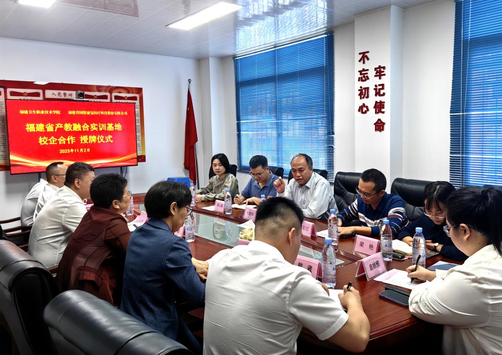 共建产教融合实训基地,是贯彻落实职业教育改革和发展的重要举措,是进一步深化“产教融合、产学合作”改革的有力抓手,是扩大探索校企深度融合的有益尝试。11月2日,我校与福建省国资康复医疗科技股份有限公司举行康复专业群产教融合实训基地授牌仪式。校长许能锋,省国资康复公司董事长林秀莲、总经理吴秀雄、党总支副书记程琛,双方部门负责人及专业带头人、专业教师等参加此次活动。