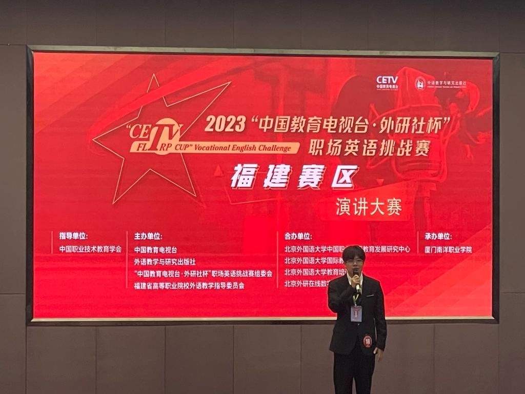 该赛项由中国教育电视台、外语教学与研究出版社、“中国教育电视台·外研社杯”职场英语挑战赛组委会、福建省高等职业院校外语教学指导委员会主办,共有来自全省各职业院校的100名选手参加。比赛旨在为广大青年学子提供一个展示风采、成就自我的广阔舞台。