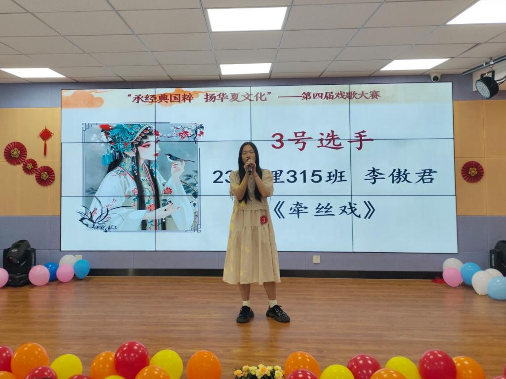 为提升我校学生的综合素质、促进校园文化的发展、丰富大学生的校园生活,进一步增强学生对我国传统戏曲文化的审美认知,提升学生对中华民族文化的自豪感与认同感,5月9日,由人文教学部美育教研室主办,校团委社团部麦克风俱乐部承办的“承经典国粹,扬华夏文化“第四届戏歌大赛于“青年之家”顺利举行。