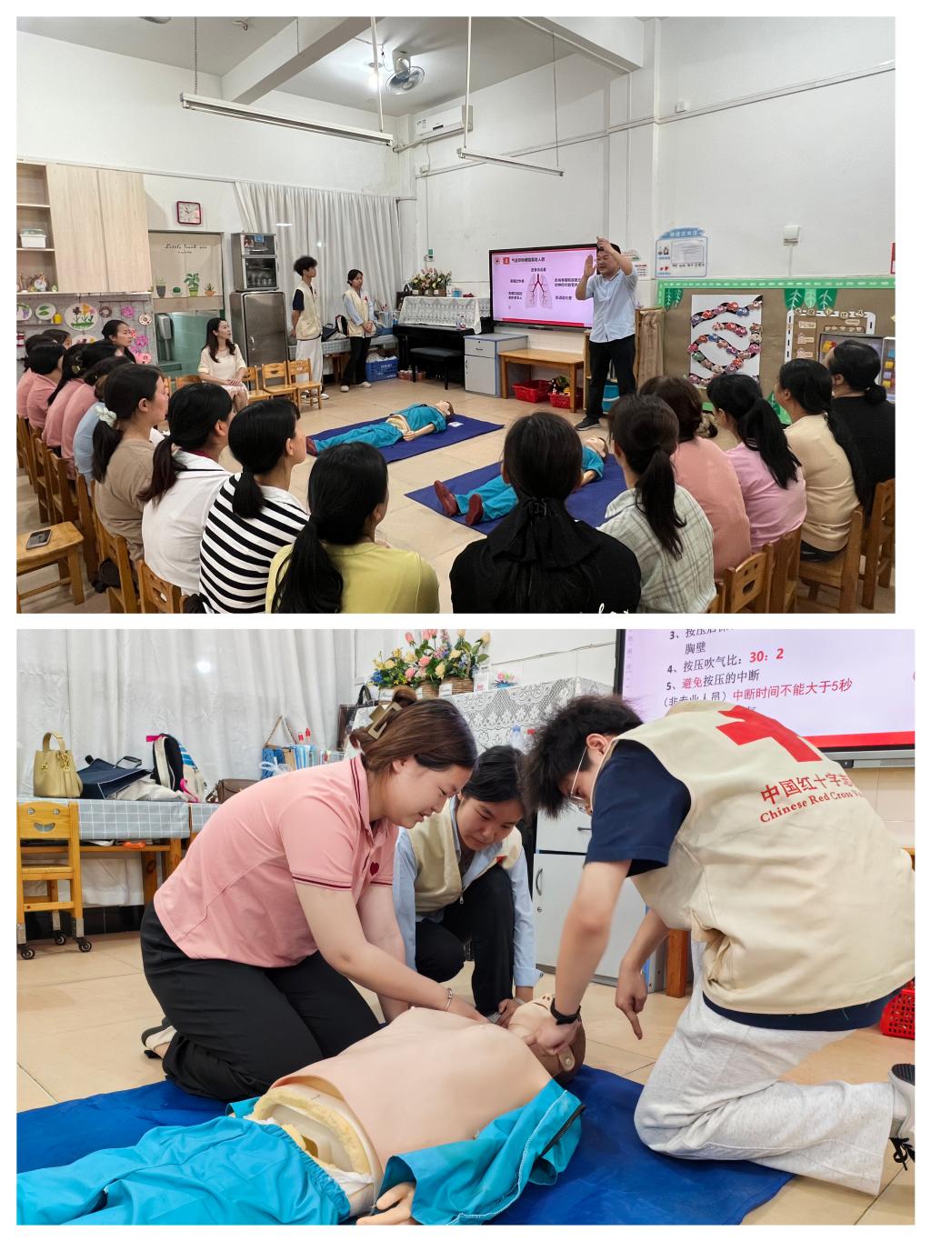 随后,医学院教师第二党支部书记叶榕为中心幼儿园的教职工进行急救培训,内容包含气道异物梗阻的识别与现场救护及心肺复苏,实用的专业知识让大家收获满满。
