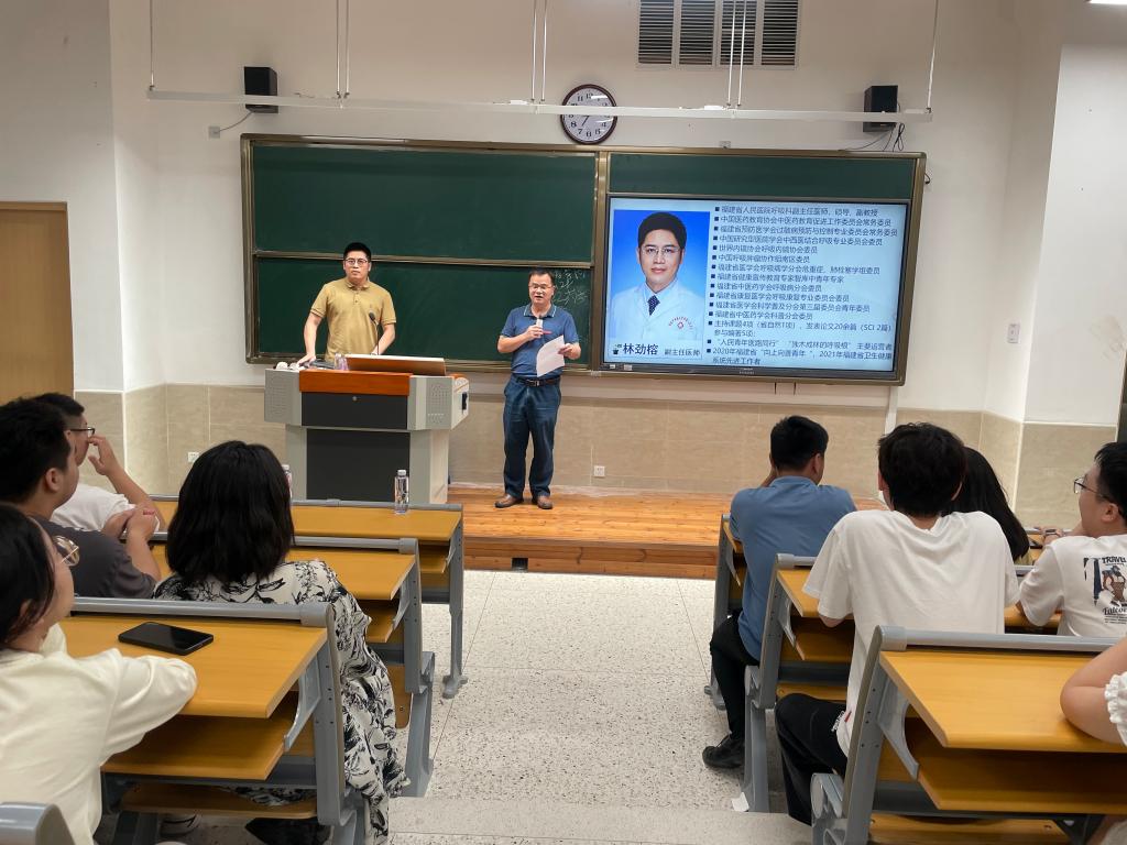 为提升中医学和针灸推拿专业学生的应试能力,5月29日,医学院特邀福建省人民医院副主任医师林劲榕作《2024年中医执业助理医师实践技能考试》专题讲座。讲座由医学院副院长邓元荣主持,中医学和针灸推拿专业教师、学生参加本次讲座。