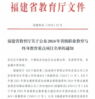 近日,福建省教育厅正式揭晓2024年度省级职业教育重点项目名单,我校在这场教育盛宴中喜讯连连,再创佳绩,共有24门精品课程入选省级职业教育在线精品课程名单,更有5门课程位列福建省职业教育课程思政示范课程榜单,在省级在线精品课程与省级课程思政示范课程的数量上,我校独占鳌头,稳居福建省医药卫生类高职院校榜首。同时,我校智能医疗装备技术专业教学资源库成功跻身省级职业教育专业教学资源库之列,药学专业群教学资源库顺利通过第六批省级职业教育专业教学资源库验收。这一系列殊荣的获得,不仅是我校深入贯彻教育数字化战略行动计划,以强化关键办学能力为核心,全力推动教育教学改革创新的生动写照,更彰显了我校在职业教育领域的卓越实力。