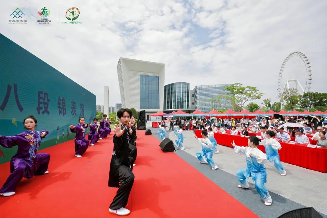 八段锦集体演练与花式跳绳表演轮番上阵,学生以传统养生功法和现代活力运动相结合的形式,向市民传递“动静结合、科学健身”的理念。现场观众纷纷跟随示范互动,气氛热烈。