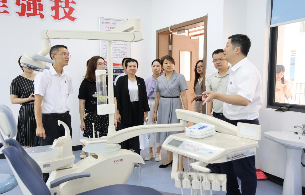 最后,朱扶蓉陪同张尉一行参观了我校中医药文化馆、医学院口腔医学专业等实训基地,并对我校口腔医学专业人才培养及口腔门诊进一步社会化运营与发展进行初步的探讨与展望。