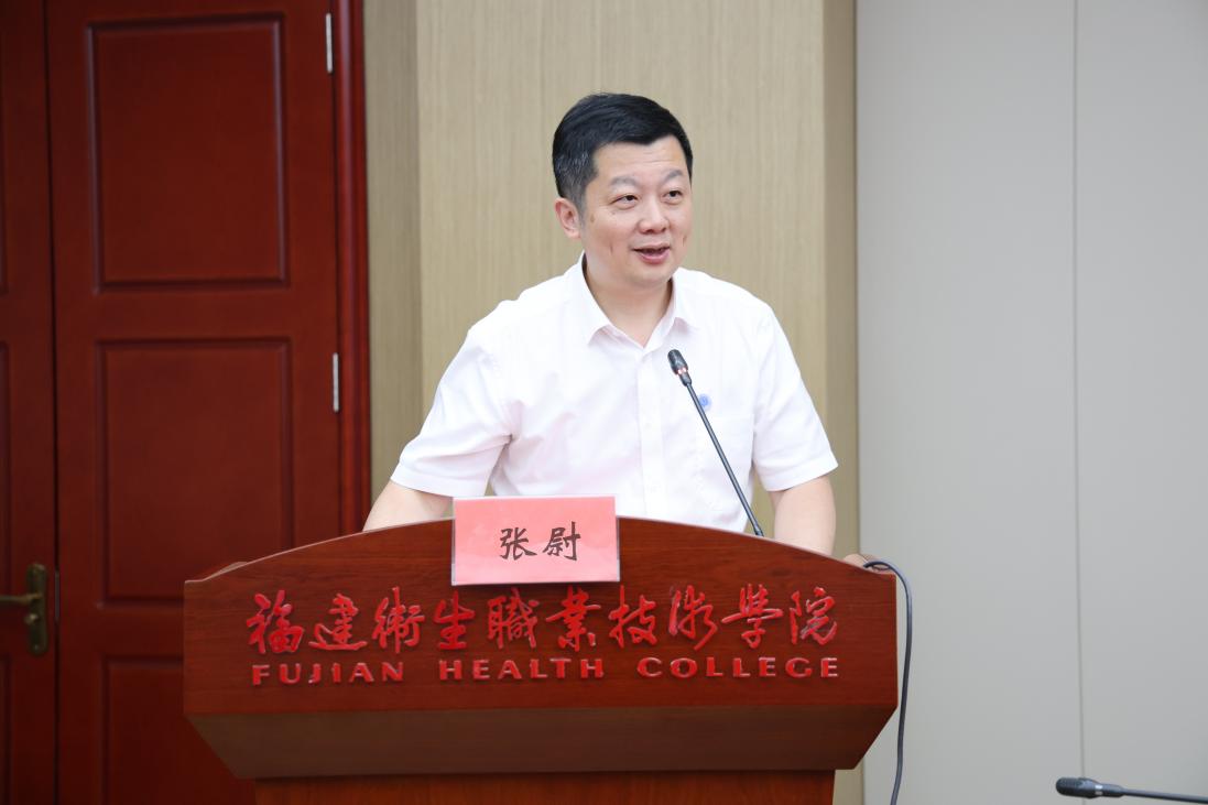 张尉介绍了福建医科大学附属口腔医院的基本情况、文化底蕴、学科发展以及大踏步迈进所取得的卓越成就。他表示,此次双方深度合作,既为护理专业学生搭建了优质的实践平台,拓宽了学生就业渠道,也为医院储备高素质护理人才提供了坚实的保障。他对同学们提出三点期许:树立正确的职业观、勤奋学理论练技能、培养团队合作精神,鼓励同学们积极进取,为口腔护理事业贡献自己的力量。