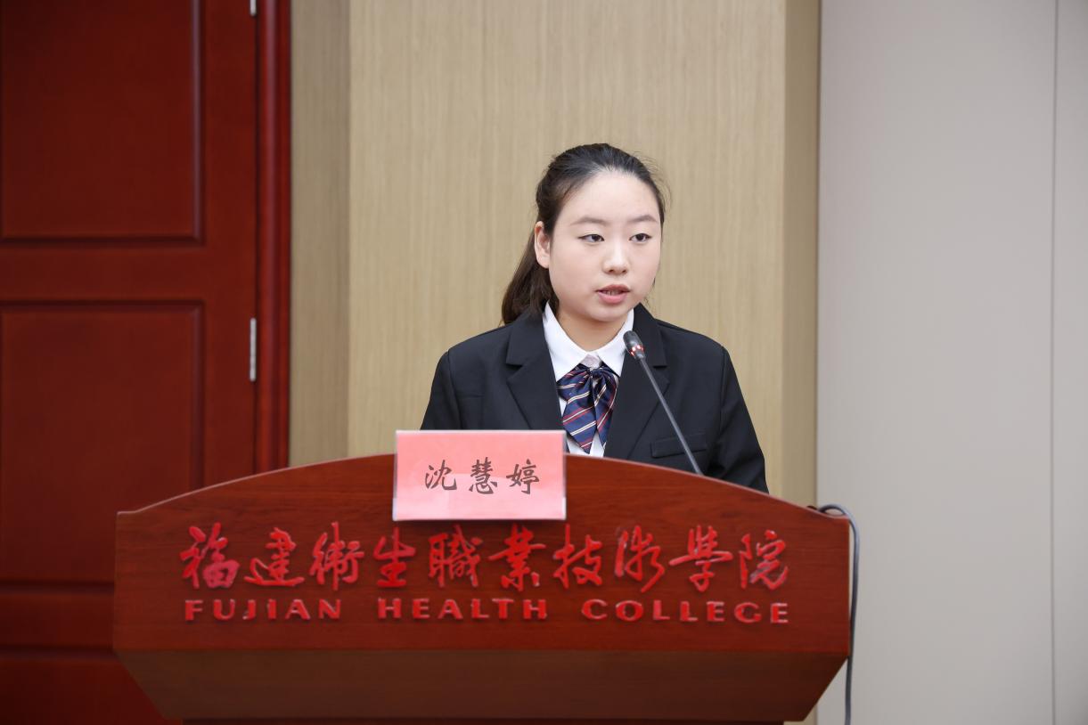 学生代表沈慧婷在发言中表示,全体同学将会好好珍惜此次学习和锻炼的机会,立志做一名“崇学笃行”的奋进者、“德技双修”的传承者和“知行合一”的答卷人,以优秀学业、过硬素质回报校院双方的厚爱与栽培。