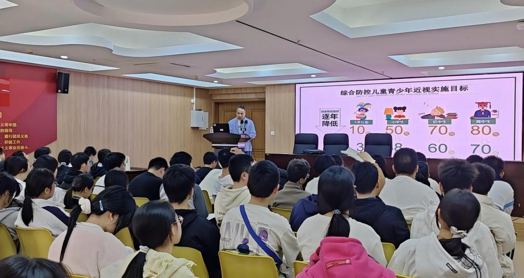为深入贯彻落实青少年近视防控工作,进一步增强中学生爱眼护眼意识,帮助学生养成科学的用眼习惯,近日,我校在福州机电职业技术学校开展一场以“保护视力 远离近视”为主题的儿童青少年近视防控科普讲座。
