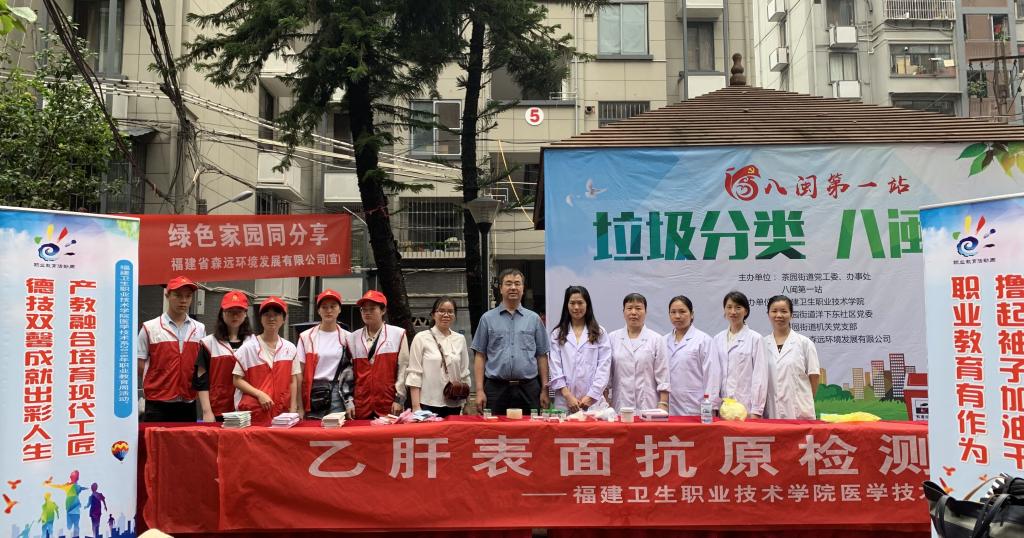 为积极响应2019年全国职业教育活动周的号召,充分展示我院办学特色和成果,发挥我院医学职业技能优势,推动“两学一做”学习教育常态化制度化,充分发挥基层党组织战斗堡垒作用和党员的先锋模范作用,医学技术系党总支组织25位专业教师(其中,教师党员19名)带领48名学生(其中,学生入党积极分子39名)于2019年5月16日前往医技系共建合作单位福州市晋安区茶园街道所属的洋下东社区洋下花园小区和东浦社区开展6项职教活动。