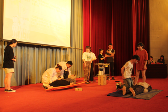 来自各系共5支参赛队伍用情景剧的形式,巧妙设计生活情境,生动直观地为在场师生展现了心肺复苏、急救包扎等十一项专业急救技能,情节都来自日常生活中的各种突发事件,现场同学在感受生动剧目的同时,更为选手们专业娴熟的技能所感染。