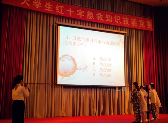 急救知识问答环节,各系代表队冷静而敏捷地应对各类急救知识竞答题,场上选手畅快竞答的同时,现场同学也学习到许多关于急救的知识和常识。