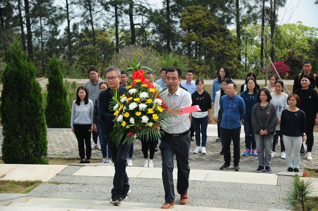 药学院第二党支部廖伟坚同志与福建省医药有限责任公司党总支王莺书记代表全体党员向红军烈士敬献花篮,寄托哀思,表达无限敬仰之情。