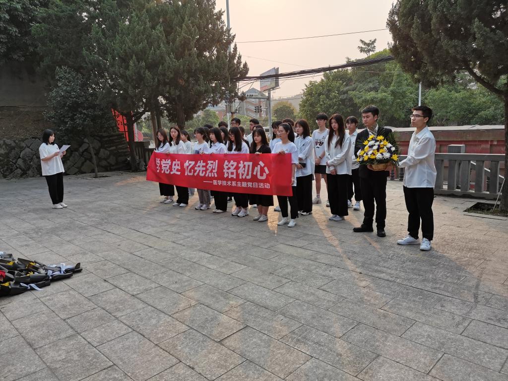 为了进一步厚植爱党、爱国、爱社会主义的情感,发扬红色传统、传承红色基因,让红色基因、革命薪火代代传承。医学技术系第一、第二党支部“双带头人”支部书记与学生党支部书记,把党课搬到烈士纪念碑前,围绕“学党史,忆先烈,铭初心”主题,现场为支部党员师生讲党史、共忆初心,激励大家要准确把握党史学习要义,要自觉投入到党史学习中,真正做到学史明理、学史增信、学史崇德、学史力行,在学思践悟中坚定理想信念,在奋发有为中践行初心使命,以优异成绩迎接中国共产党成立100周年。
