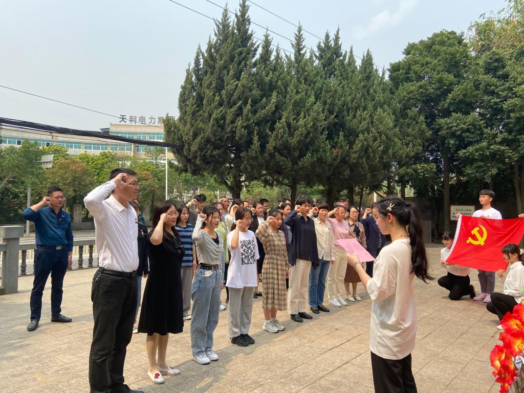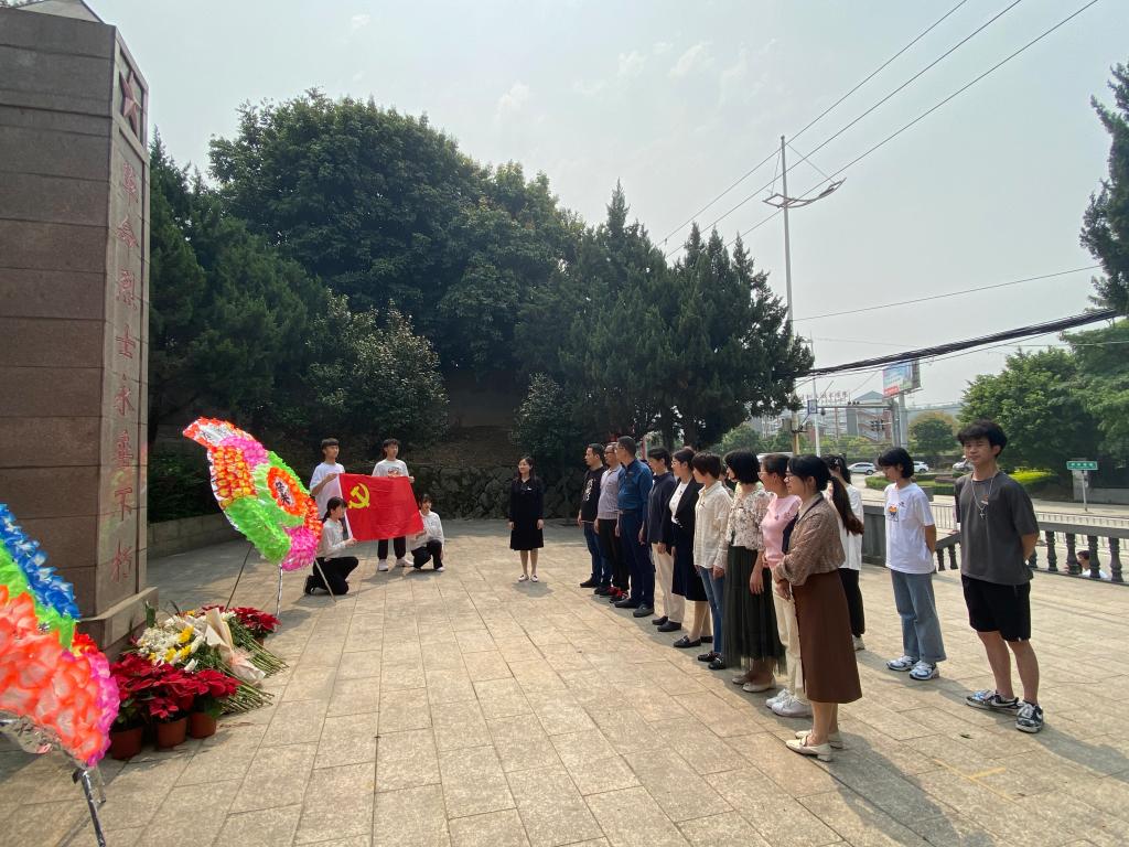 青年团员面向团旗,党员同志面向党旗,在烈士纪念碑前重温入党(团)誓词,表达着为党的事业奋斗终身的决心,表达了“不忘初心、牢记使命”的坚定信念。
