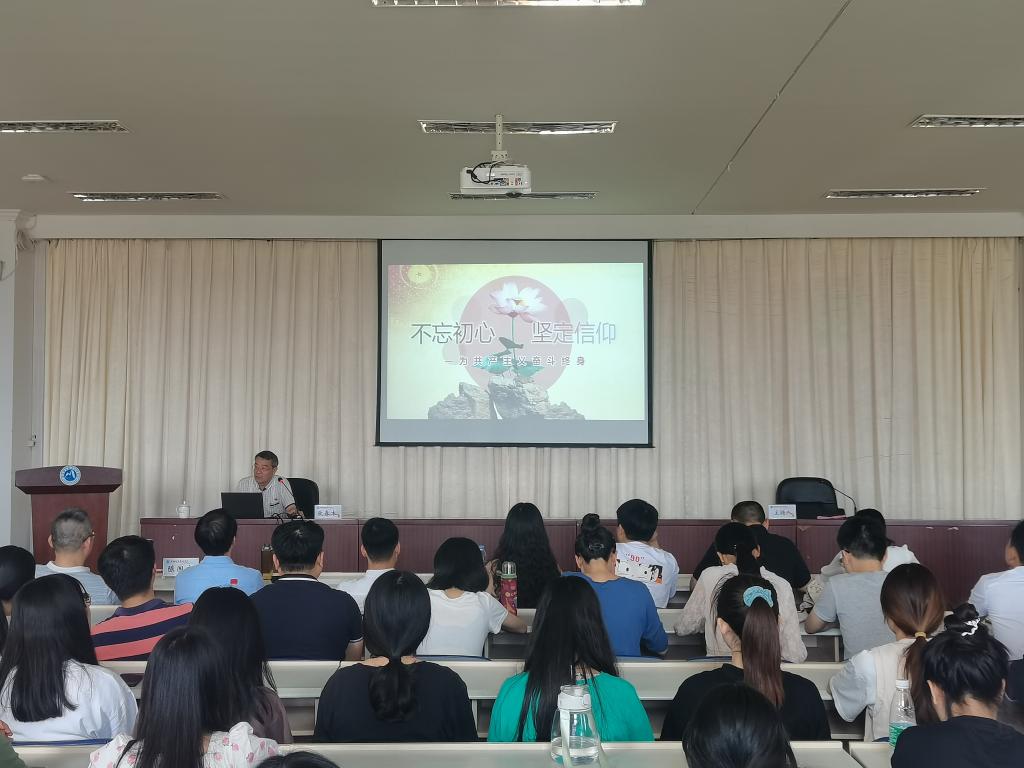作为一名有着50年党龄的老党员,欧春木以“为共产主义奋斗终身只是一个‘口号’吗”、“共产党员应为自己画怎样的‘自画像’”、“真正的共产党员是怎样‘炼’成的”三问为主线,结合党史学习详细阐述了如何做一名合格的共产党员。他指出当我们第一次提交入党申请书的时候,就允了一份承诺、担了一份责任、承了一份使命,这承诺、这责任、这使命必须铭记一辈子、守护一辈子、忠诚一辈子。他号召全体师生回望源头,汲取信仰力量;面向未来,更思肩上重任,为共产主义奋斗终身。