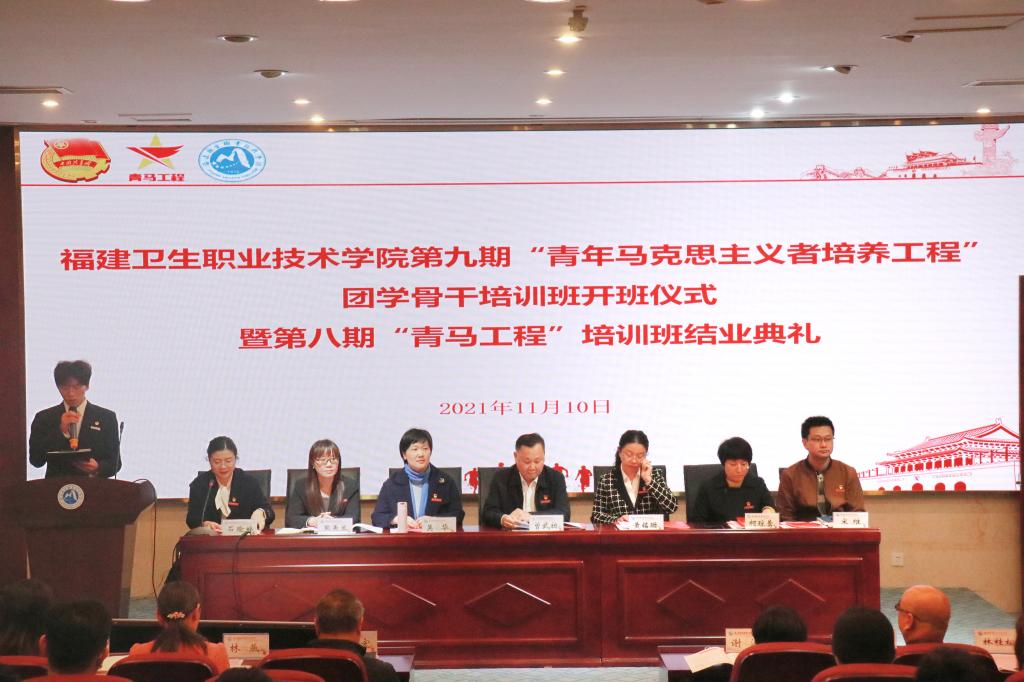 11月10日晚,我校第九期“青年马克思主义者培养工程”团学骨干培训班开班仪式暨第八期“青马工程”培训班结业典礼在实训楼四楼会议室顺利举行。党委书记曾武祈、副校长黄铭珊出席仪式,党委组织统战部、党委宣传部、学生工作部、马克思主义学院、团委和各二级院系党团总支负责人、师生代表160人参加仪式。