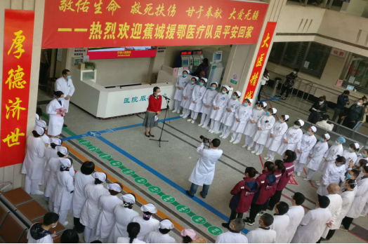 药剂科科长李枝端作为校友代表发言。他感谢母校的辛勤教导,表示将继续谨遵母校“业精德诚”的校训精神,兢兢业业奋战在一线。同时要尽力关心爱护来院实习的学弟学妹,重视他们的培养,为他们的成长负责。
