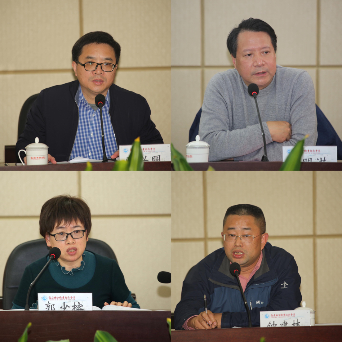 1月26日下午,由我校党委书记曾武祈主持的全国教育科学“十三五”规划教育部重点课题“校政企社多元共促职业教育精准扶贫研究”成果公开报告会在我校举行,参会的评议专家有闽江学院副院长陈兴明研究员、福建省教育科学研究所所长吴明洪编审、福建省教育科学研究所基础教育研究室主任郭少榕研究员、福建省教育科学研究所《教育评论》编辑部主任钟建林副编审。会议由副院长郑翠红主持,课题组负责人曾武祈、课题组成员、部分教师代表以及教务处、科研处相关部门人员出席本次报告会。