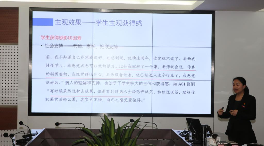 课题组从研究背景与问题、研究内容与方法、研究结论与对策、研究成果与影响、研究的不足之处五个方面详细汇报了课题研究任务的完成情况。与会专家肯定了该课题的研究成效,认为以医药卫生类职业教育精准扶贫为研究案例,探索学校、政府、企业、社会四方协同合作的模式与职业教育精准扶贫的路径与对策,一定程度上补充了目前医药卫生类职业院校在政府、学校、企业及社会合作办学研究的不足,对脱贫攻坚工作也具有一定的理论指导和实践推广意义。建议课题后续研究中,可将已探索的校政企社多元共促模式扩大应用到其他专业,并向同类职业院校辐射应用。