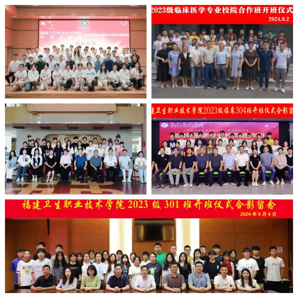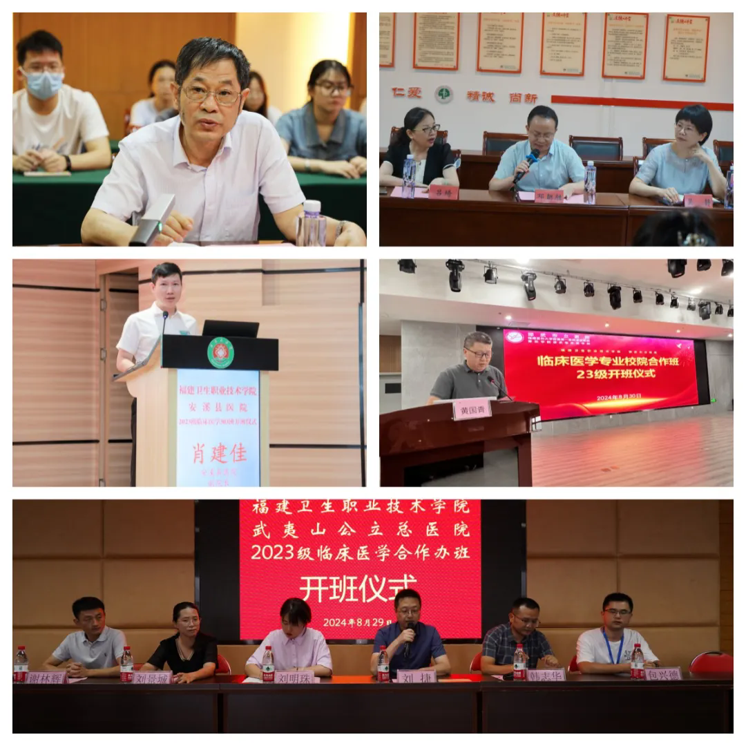 2024年9月,医学院2023级临床医学专业武夷山市立医院、邵武市立医院、福建省老年医院、宁德市医院、安溪县医院5个校院合作班开班仪式在各教学医院隆重举行,医学院领导班子、专业老师、辅导员分别到各医院参加开班仪式。