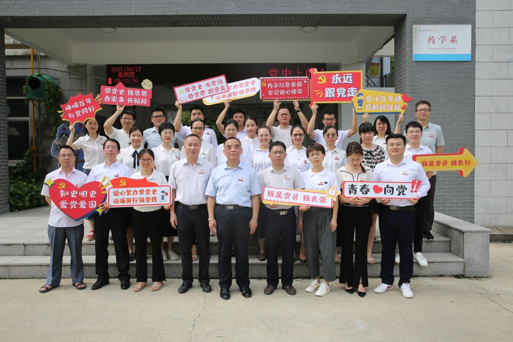 为庆祝中国共产党成立100周年,讴歌党的辉煌历程和丰功伟绩, 2021年6月17日,药学院组织全体教职工党员开展“忆党龄 守初心 担使命”系列主题党日活动。