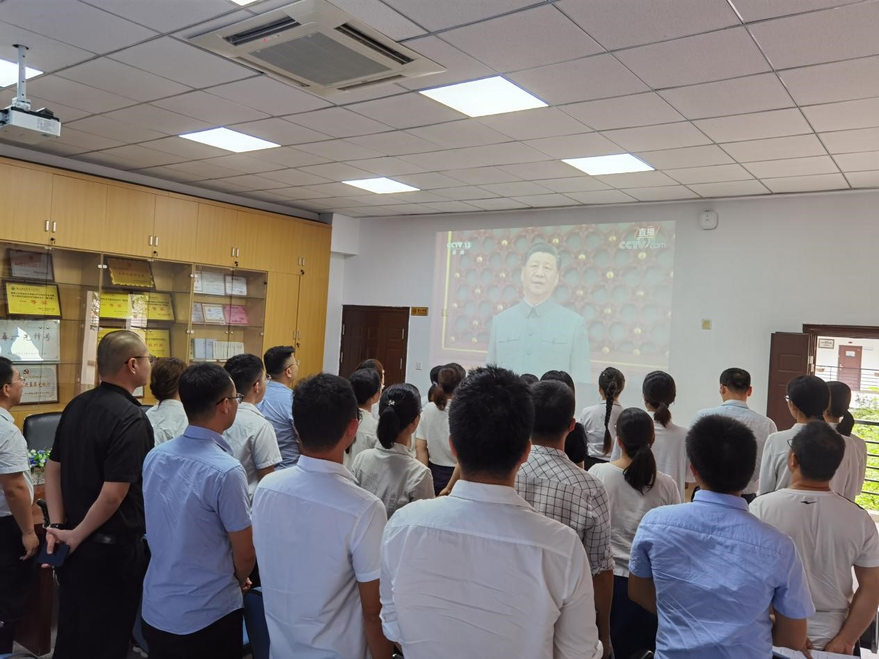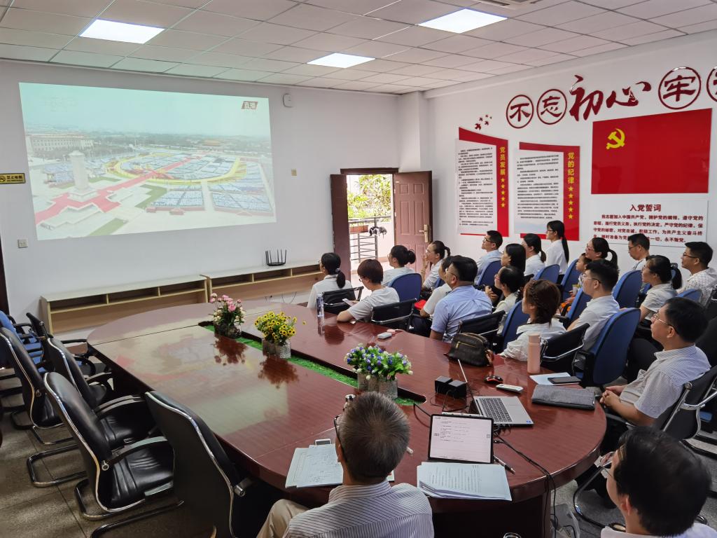 随后,党员在会议室一起观看了“庆祝中国共产党成立一百周年大会”直播。在播放国歌时,全体党员自觉起立,共唱国歌。