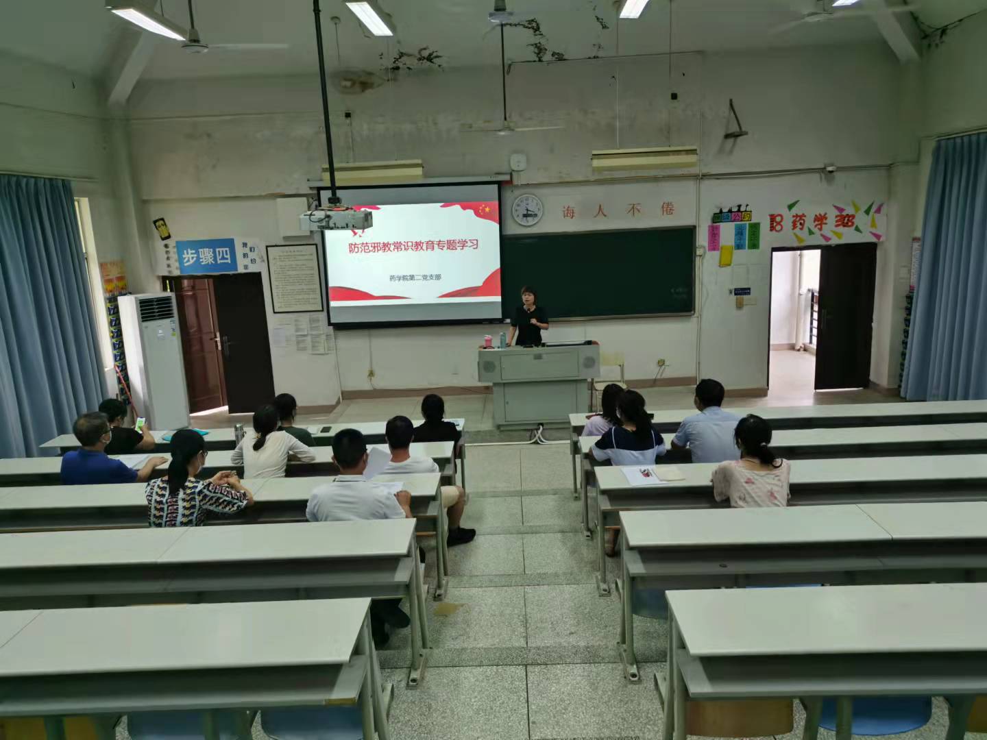 为进一步弘扬科学精神,提高支部党员对邪教组织的警惕性、鉴别和防范能力,药学院第二党支部于2021年9月30日开展防范邪教常识教育专题学习。本次专题学习由支部书记刘丹丹主持。