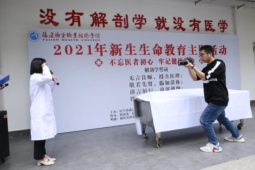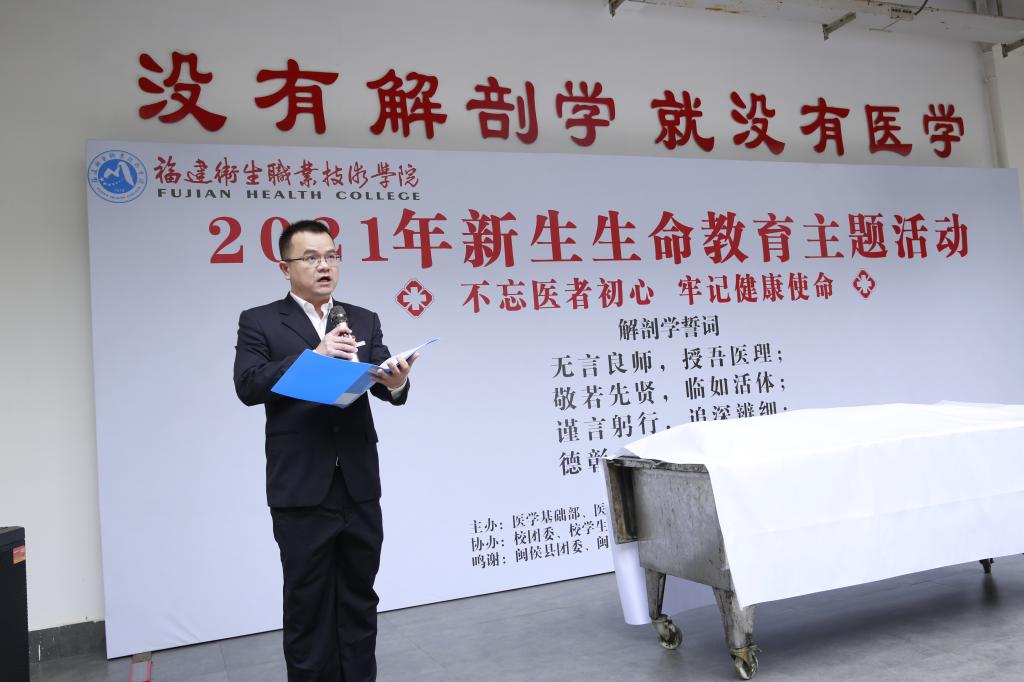 为让年轻学子们切身体会生命的崇高与不朽,践行“敬佑生命、救死扶伤、甘于奉献、大爱无疆”的医护精神,11月18日,医学系第四党支部在医学基础部一楼中庭和学术报告厅开展以“不忘医者初心 牢记健康使命”为主题的生命教育党日活动。校长许能锋,团委、学生工作部、医学系负责人,医学基础部全体教师、辅导员代表、各系2021级学生代表、第二课堂学生参加活动,闽侯县团委、闽侯县青少年宫、福州英华职业学院、闽侯职业中专学校师生代表受邀出席,共有397人参加此次活动。