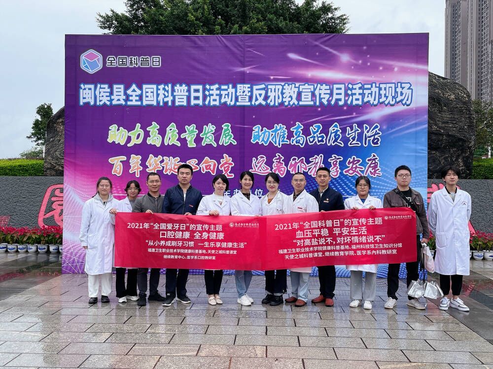 为推进慢病知识的基层普及,提高基层群众的慢病管理能力,充分发挥党员的先锋模范作用、发挥专业教师特长,2021年10月22日,医学系党总支第一党支部党员、内科教研室教师王芳、彭小蕊随我校继续教育学院、闽侯县科协一行赴闽侯县民俗园开展“高血压病防治”科普、义诊活动。