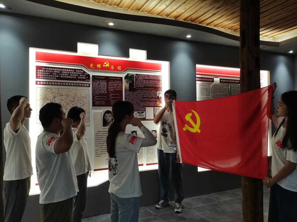 在黄孝敏烈士故居,支部党员、青年学生深刻体会到黄孝敏烈士坚韧不拔的斗争精神、矢志不渝的理想信念、视死如归的英雄气概,参观结束后,师生面向党旗,庄严宣誓,铿锵恢宏的誓词,一字一句,神圣而豪迈,体现了对中国共产党的无限忠诚和为共产主义事业奋斗终身的坚定决心。在前洋革命历史展陈馆,师生们被革命先烈的革命精神深深感动与鼓舞,纷纷表示要珍惜来之不易的幸福生活,讲好红色故事,传承红色基因,永远跟党走,奋进新时代。