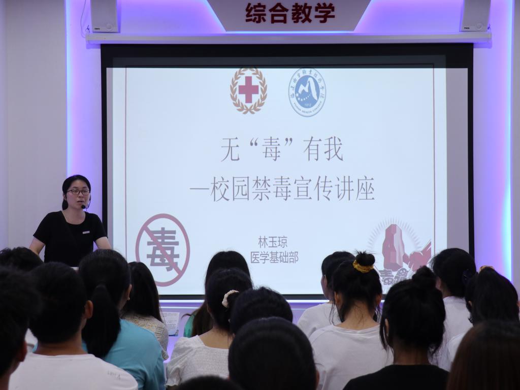 为深入推进党史学习教育,提高广大师生抵制毒品的安全意识,帮助学生健康成长,2021年6月17日,医学系第四党支部联合校团委开展“健康人生,绿色无毒”禁毒知识宣讲志愿服务活动。活动在学院红十字学堂开展,支部全体党员积极参加。