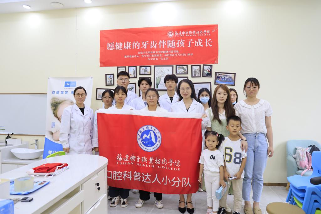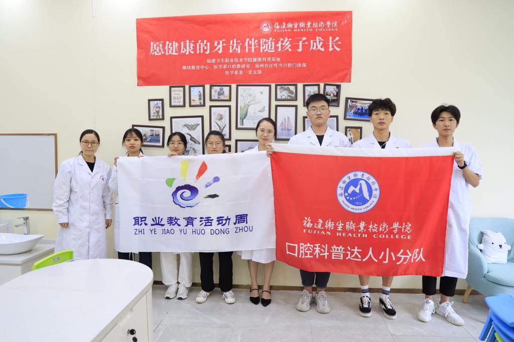 为推进2021年全国科技活动及福建卫生职业技术学院2021年职业教育活动周工作的有序开展, 6月4日下午,医学系口腔教研室和医学系第一党支部口腔科普达人小分队来到了福州台江叮当口腔门诊部开展“愿健康的牙齿伴随孩子成长”的口腔科普宣教活动。