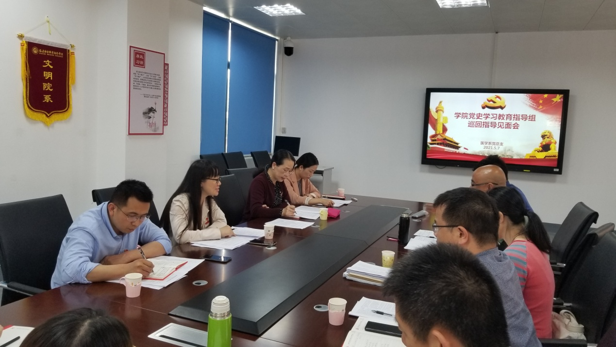 根据学校党史学习教育工作的安排,5月7日下午,由校党委委员、副院长郑翠红带队的学校党史学习教育指导小组深入医学系党总支指导党史学习教育第一阶段工作情况。