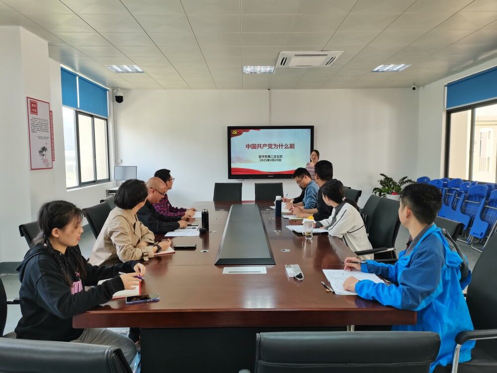 今年是中国共产党成立100周年,为进一步加强支部党员党史学习教育,4月20日,医学系第二党支部组织支部全体党员在实训楼311会议室开展“中国共产党为什么能”主题党课,支部全体党员参加。