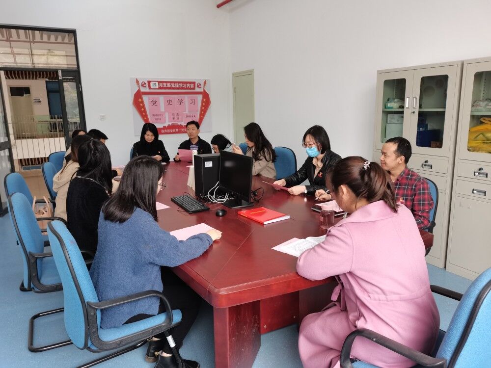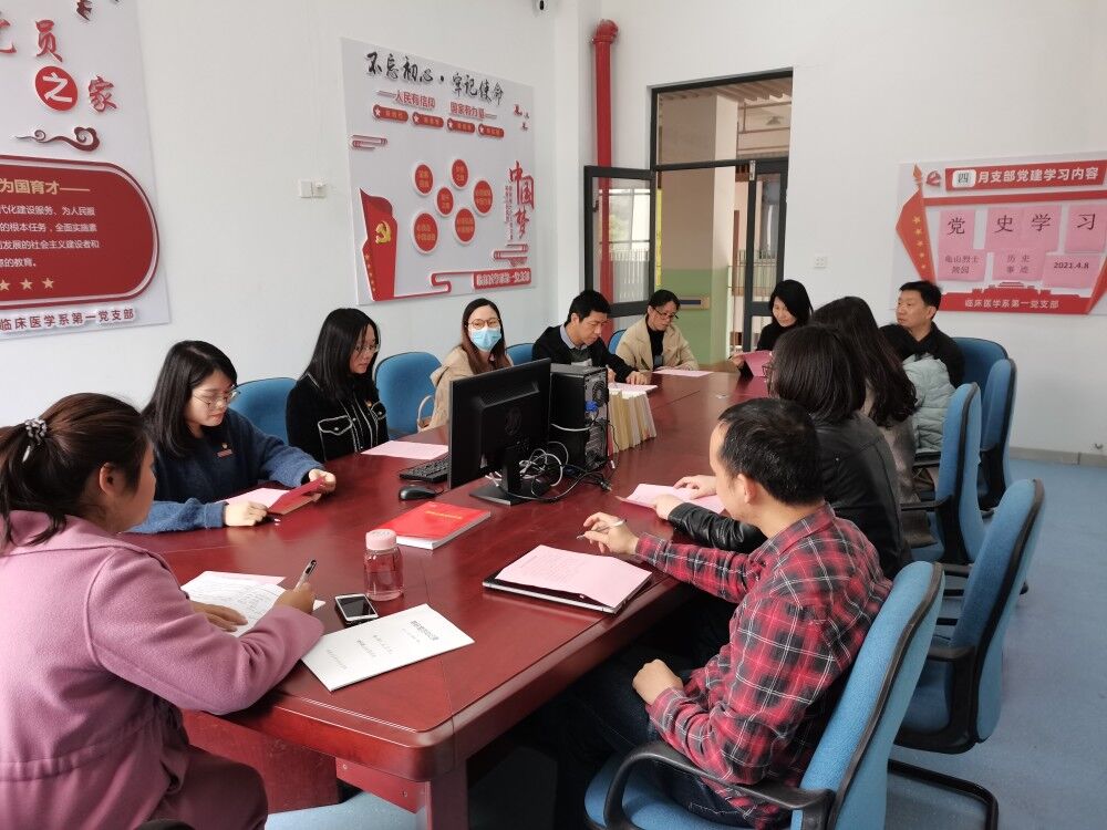 为缅怀革命先烈,传承红色基因,4月8日,医学系第一党支部书记“双带头人”朱翔,围绕龟山烈士陵园历史事迹,在实训楼215会议室开展“知党史、铭党恩、重温红色故事”主题党课,支部全体党员参加。