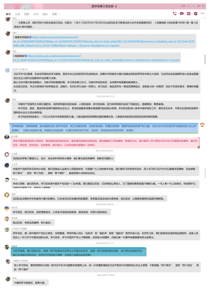 新春伊始,习近平总书记在党史学习教育动员大会上发表了重要讲话,阐述了开展党史学习教育的重大意义,阐明了党史学习教育的重点和工作要求,对党史学习教育进行了全面动员和部署。医学系第三党支部积极响应中央号召,于2021年2月28日通过线上集中学习的形式,开展“学党史、悟思想”主题党日活动。本次活动由支部书记陈铭主持。